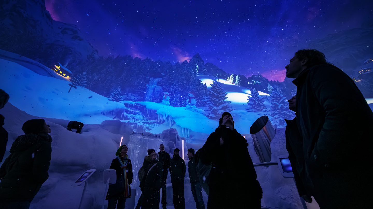 Das Publikum findet sich im Innern der Schneekugel in einer magisch anmutenden Winterwelt wieder. Über berührungsempfindliche Flächen können die Besucher*innen mit der Projektion interagieren und sie gemeinsam zum Leben erwecken. Mit der beginnenden Morgendämmerung entfaltet sich ein 360-Grad Winterpanorama, welches das Publikum einen vollgepackten Wintertag in Zeitraffer erleben lässt: Vom Sonnenaufgang über den Tag bis zu den Nordlichtern in der Nacht spielen sich in diesem poetischen Panorama rundherum viele kleine Geschichten ab, wie in einem Wimmelbild.