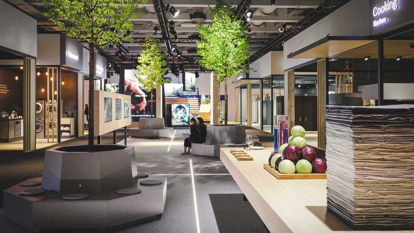 Elementarer Teil des holistischen Markenerlebnisses sind sieben individuelle Produktboutiquen. Sie laden dazu ein, Produkte und Lösungen vor Ort zu erleben. So werden die Bereiche Laundry Care, Dishwashing, Floor Care, Cooling & Freezing, Cooking, Coffee und Professional unmittelbar erfahrbar. Highlight-Installationen schaffen einladende Gesten für relevante Nachhaltigkeits-Schwerpunkte: Messegäste können in kleine Erlebnisreisen eintauchen und auf spielerische Weise die innovativen Technologien kennenlernen, die unseren Alltag bereits heute zukunftsfähig machen. Atmosphärische Inszenierungen schaffen abwechslungsreiche Raumerlebnisse, bewusste Zonierungen strukturieren die Boutiquen und schaffen ein Wechselspiel aus Beratung, Erlebnis und Vorführungen. Thematische Vertiefungen ergänzen punktuelle Erlebnisregale, die sich in die atmosphärischen Inszenierungen einbetten.
